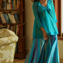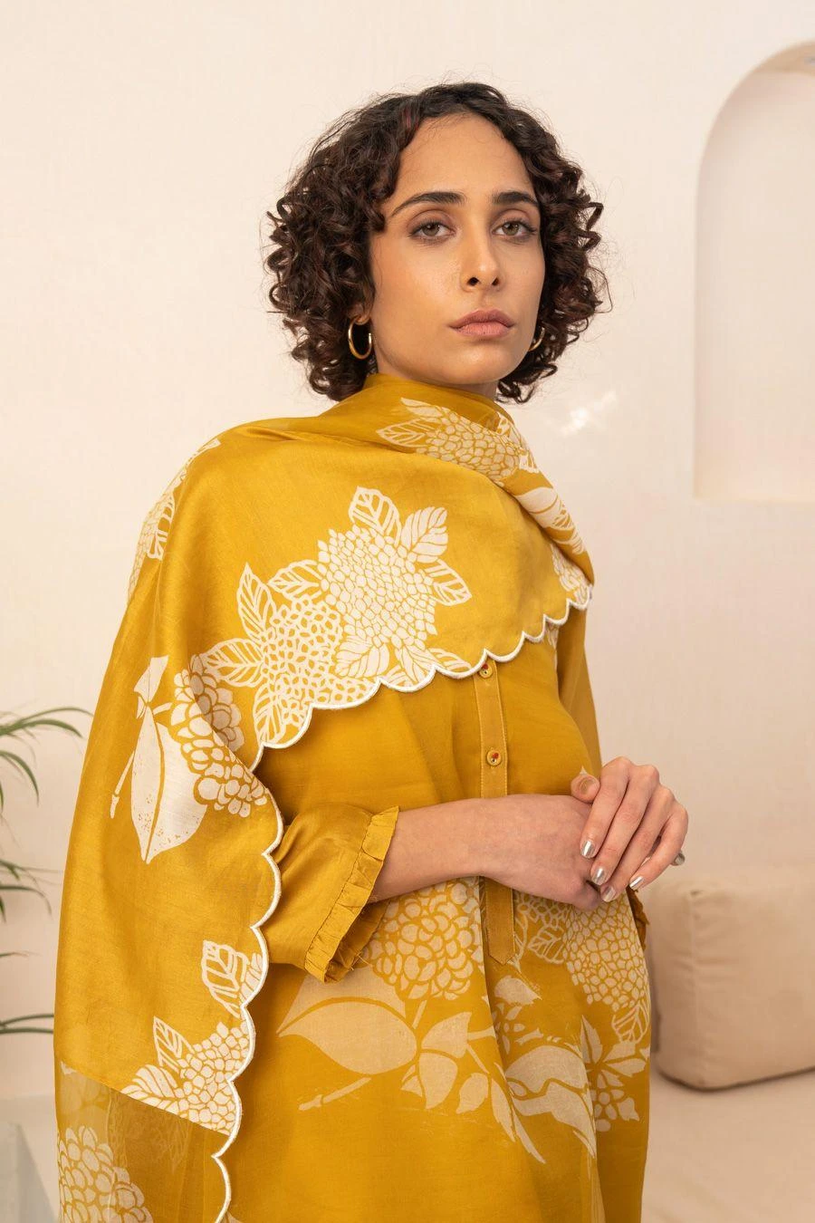 From your work desk to the brunch table & from lounging at home to catching flights, you can always count on this kurta set. Crafted in chanderi, this set features a floral printed tunic paired with narrow pants & a dupatta.