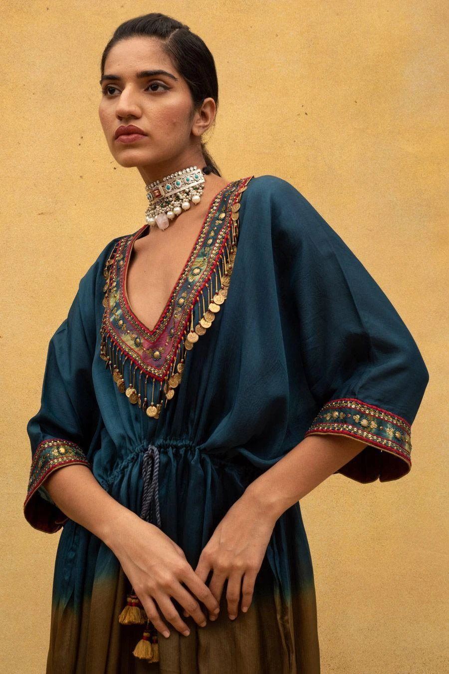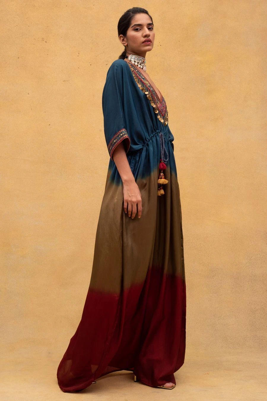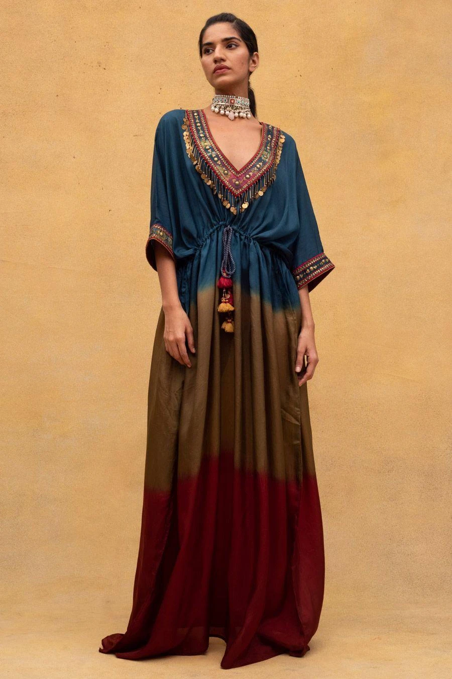 CAPISVIRLEO Embroidered V-neck Tie & Dye Kaftan