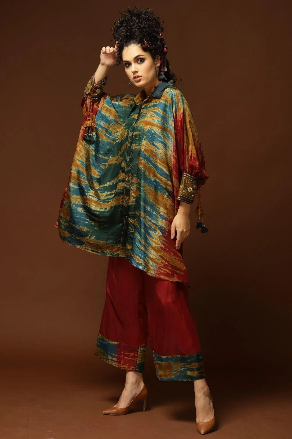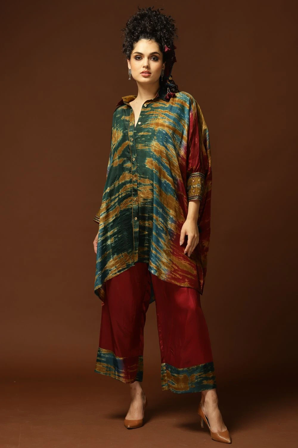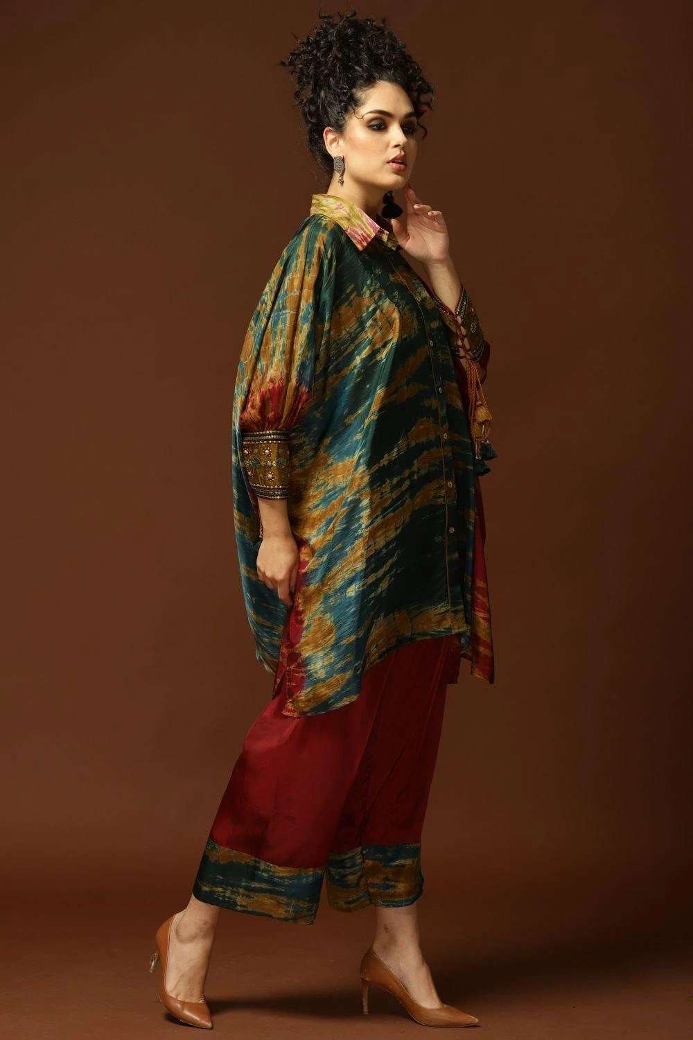 CAPISVIRLEO Emerald & Red Tie & Dye Kaftan Set