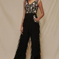 Add a layer of statement & glamour to your resort getaways with this ivory jumpsuit. Crafted in kala cotton, this jumpsuit features intricate threadwork & beadwork details. Add a pair of dangler earrings to complete the look.