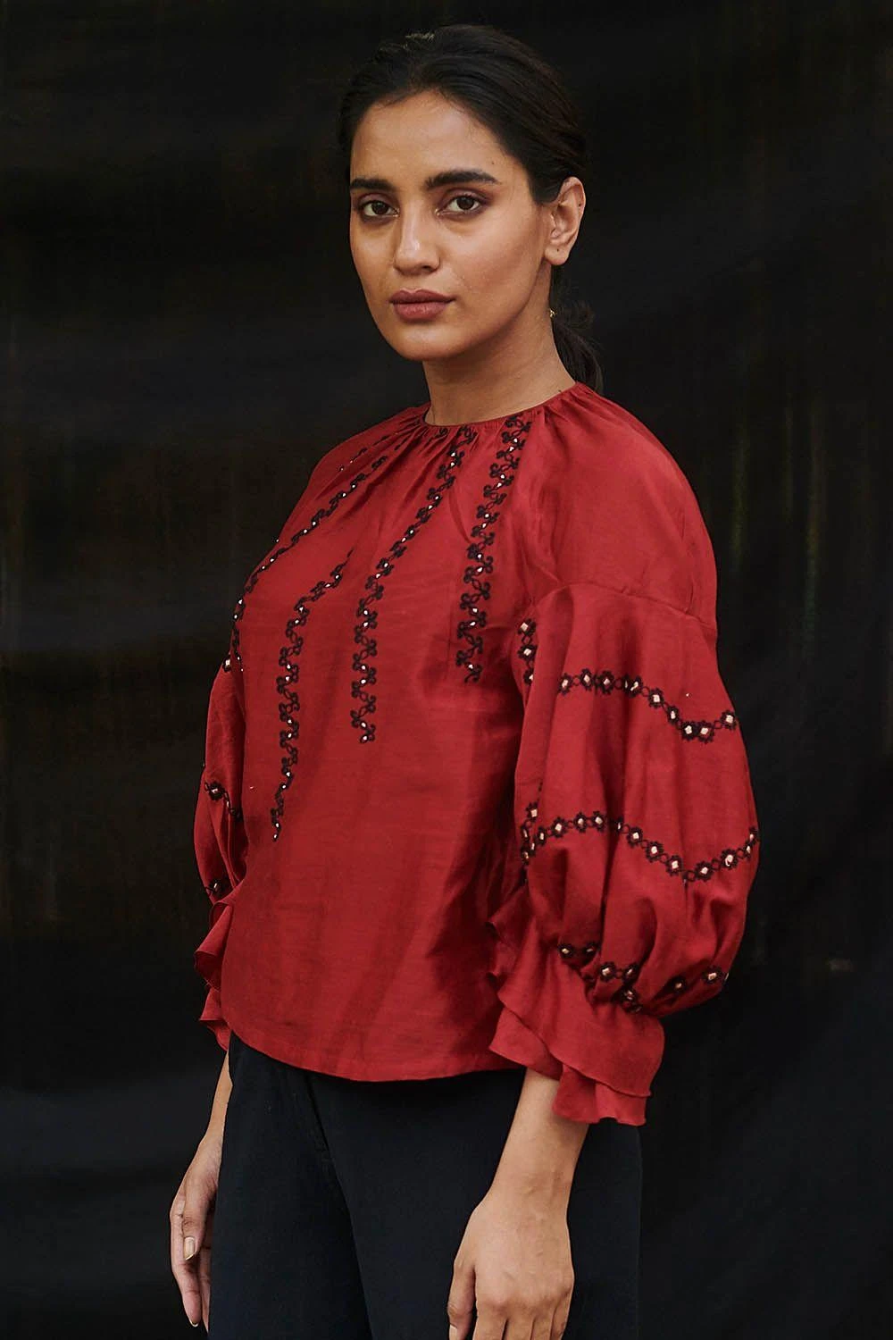 Chandrima Red Chanderi Cordwork Top