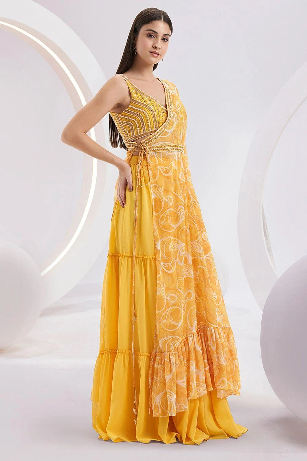 Material/Fabric : Blouse- Georgette Skirt- Georgette Cape- Printed Chiffon