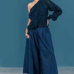 With a playful juxtaposition of texture and colour, ILK effortlessly blends a minimal and feminine aesthetic with this top. Crafted in silk chanderi, this off shoulder top features crinkled & smocking details all over.