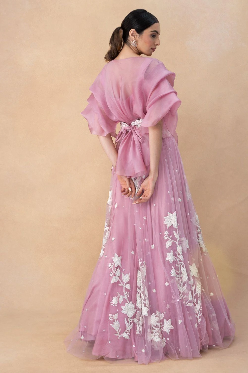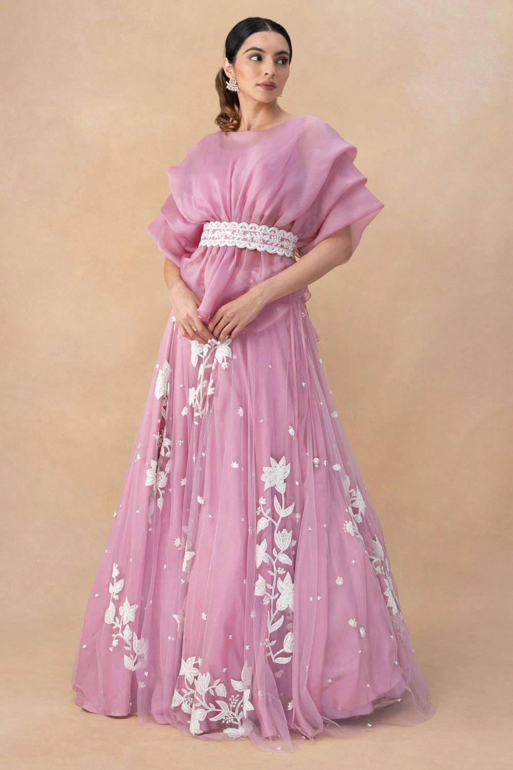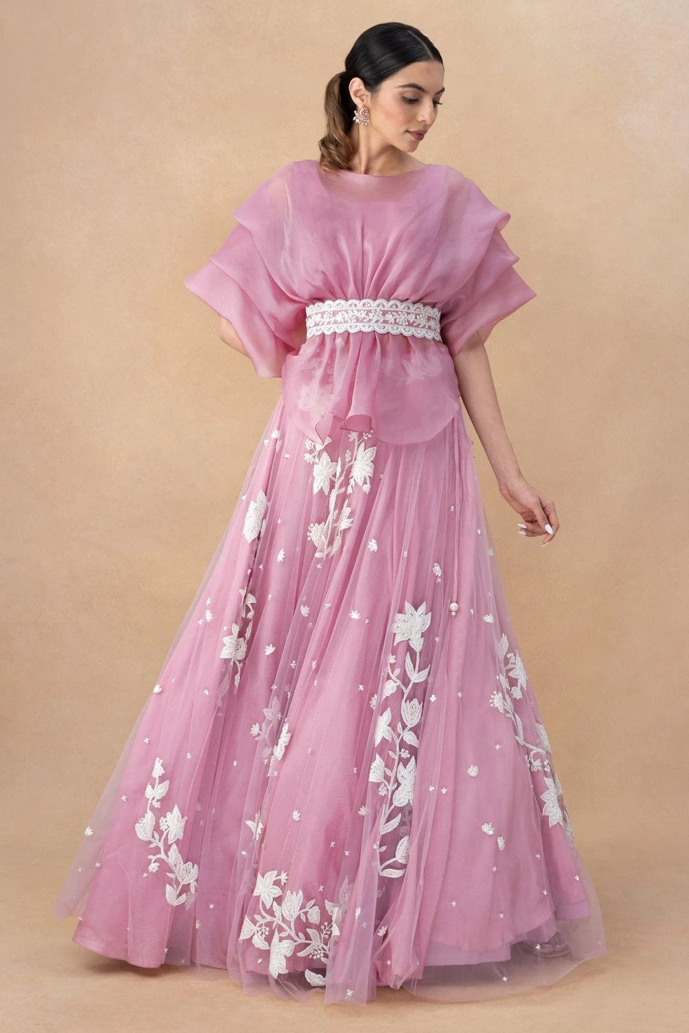 Look effortlessly sty;ish with this Bright Pink Lehenga Set. The pouf top, belted at the waist, pairs beautifully with the bustier, creating a vibrant and captivating look that’s perfect for your special occasion.