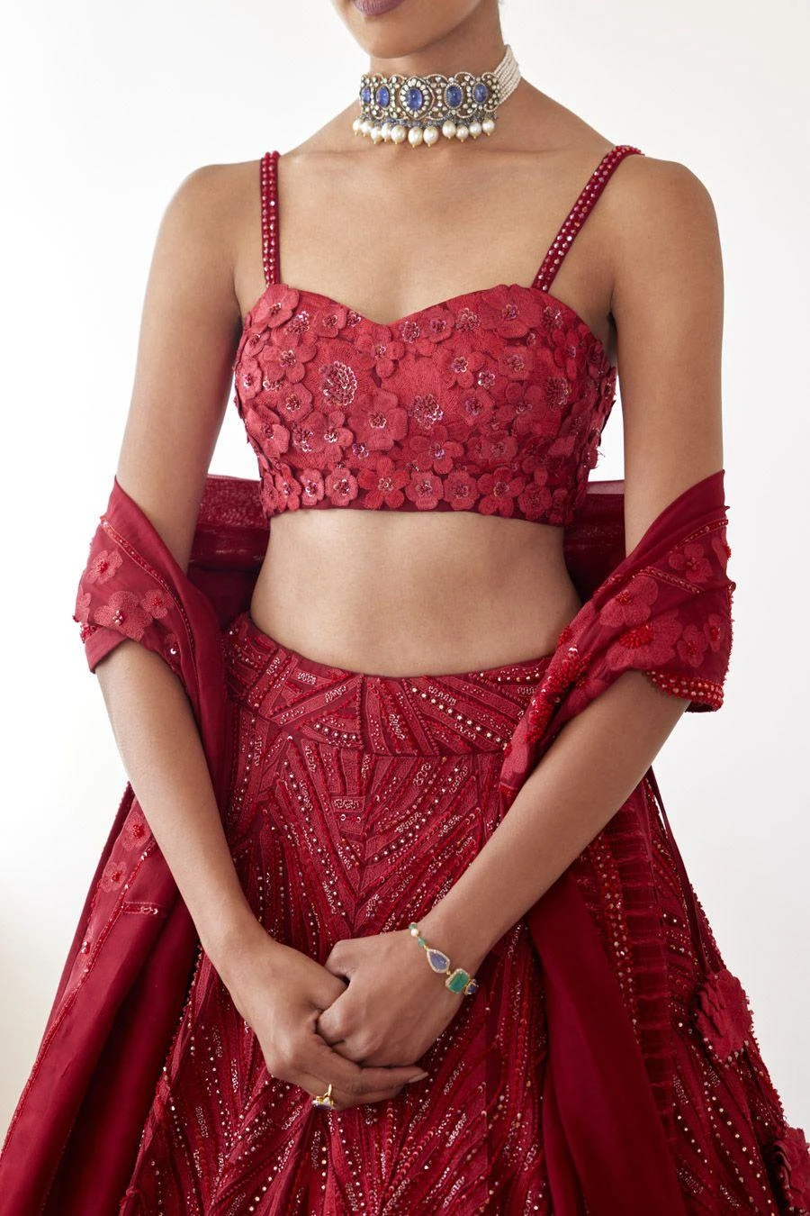The perfect amalgamation of style and comfort, this lehenga set works across occasions. Crafted in organza, this set features a floral embellished lehenga paired with an equally versatile blouse & a dupatta.