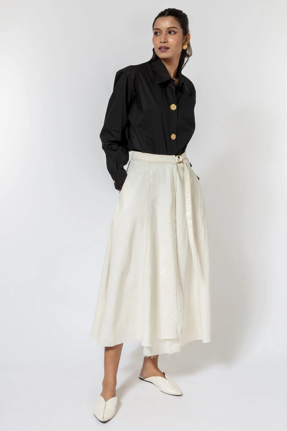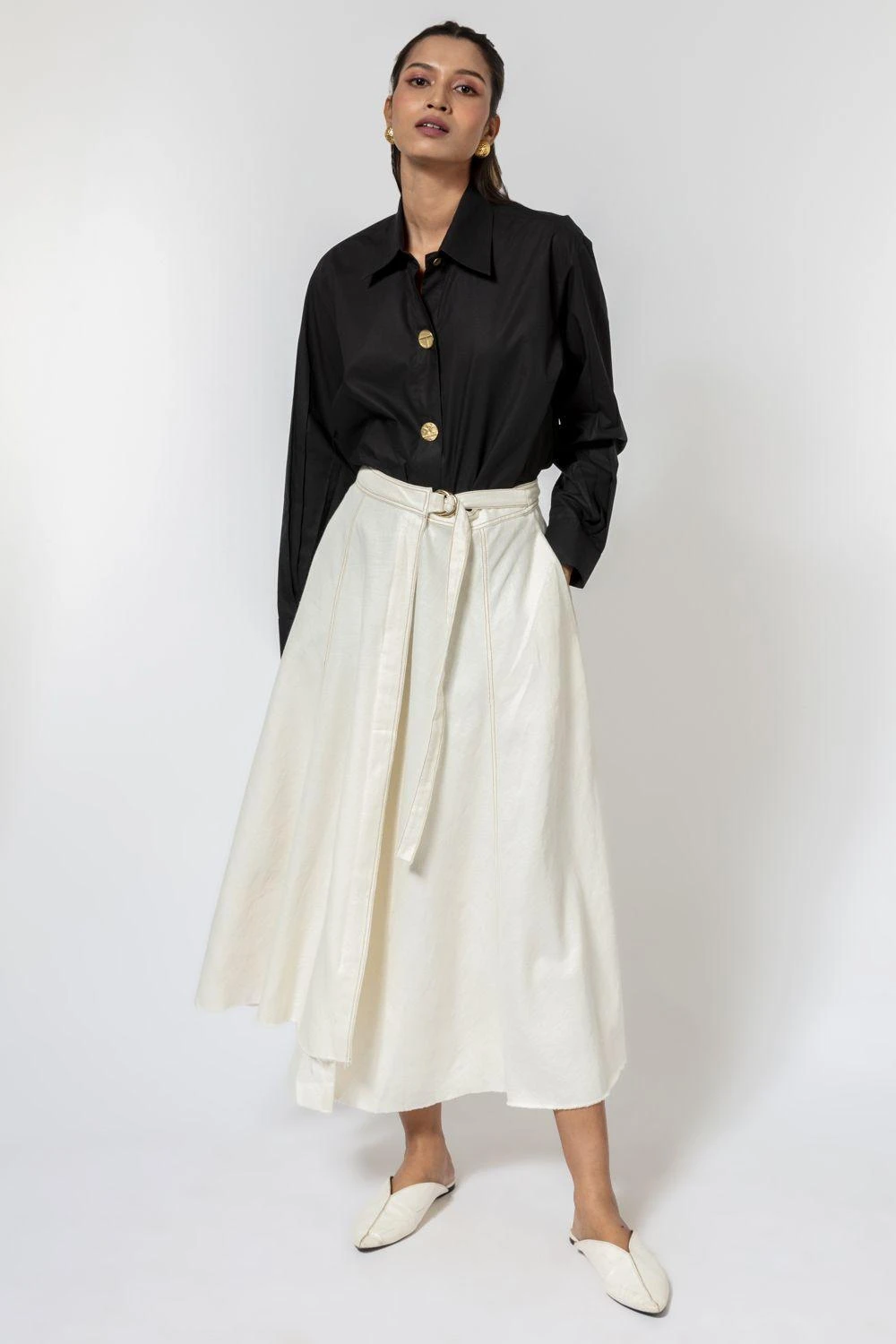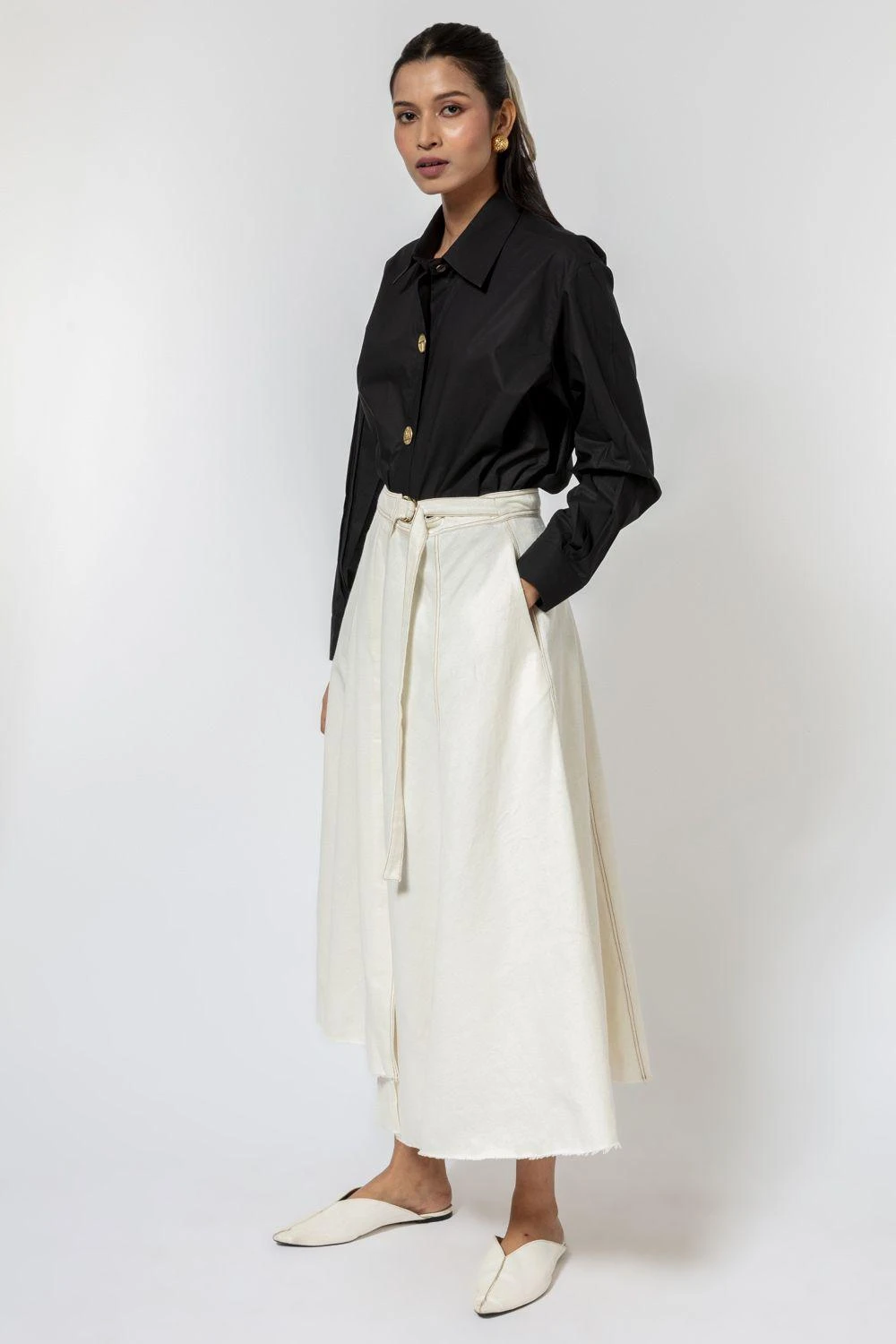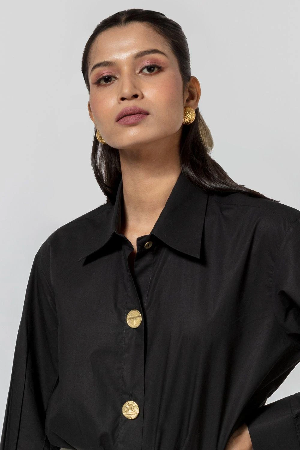 For an everyday elevated look, this black crisp shirt is a great pick. It is cut in 100% cotton poplin and fastened with Ode to Odd’s signature golden buttons. You can style this versatile piece from desk to drinks.