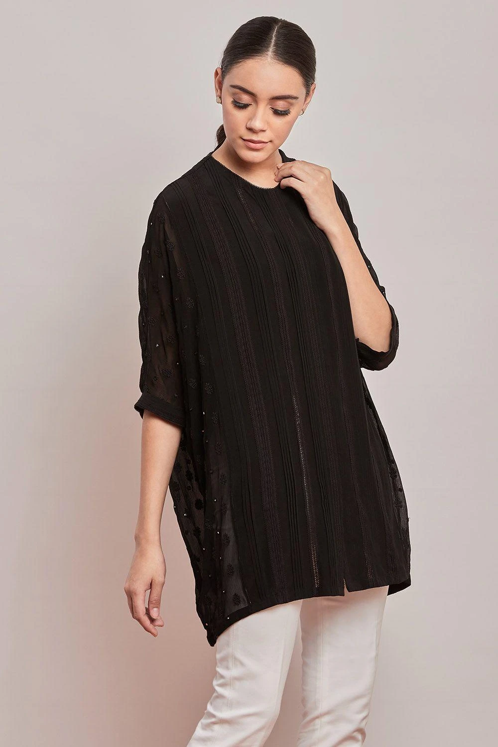 PATINE Black Chikankari Embroidered Top
