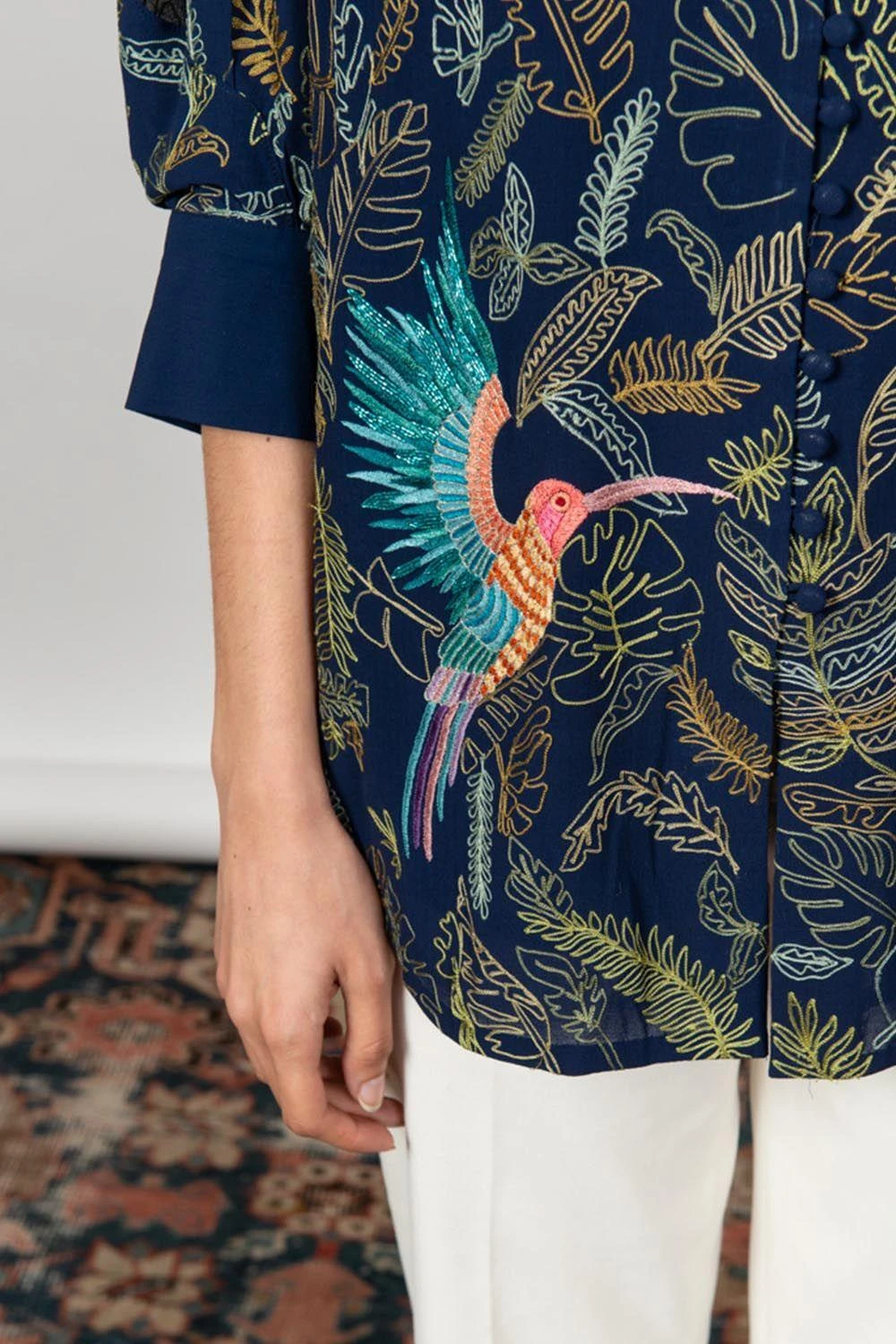 PATINE Embroidered Shirt With Leaves & Bird Motifs