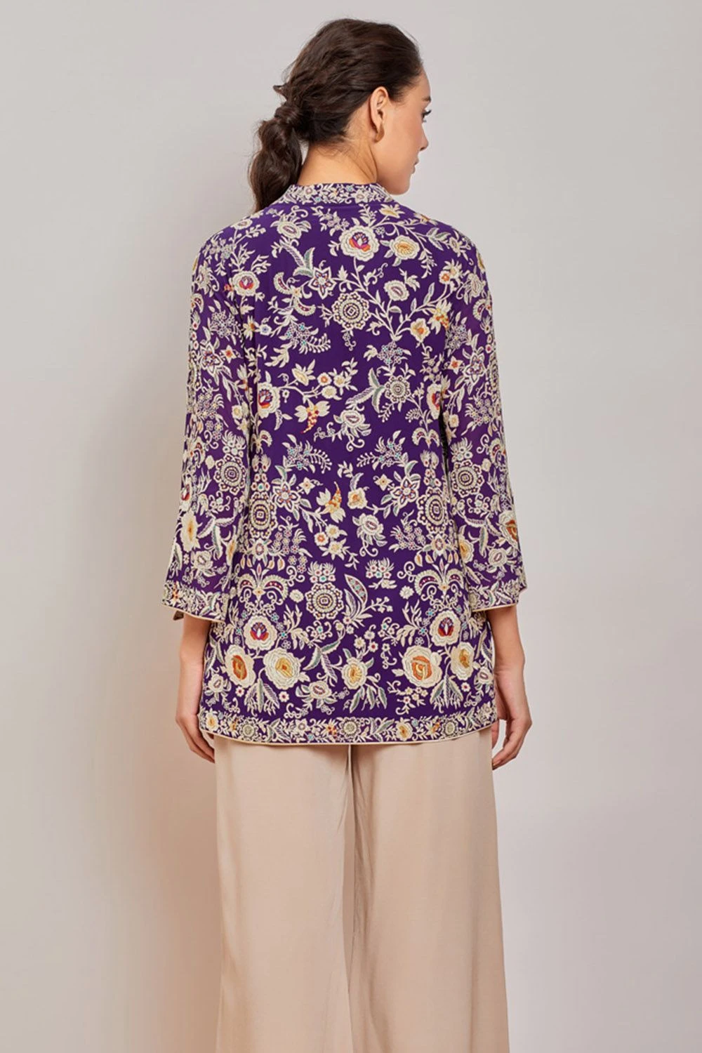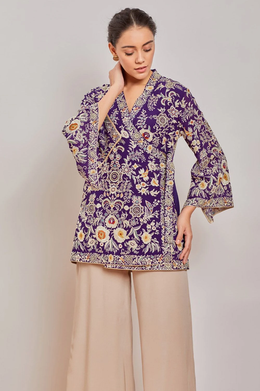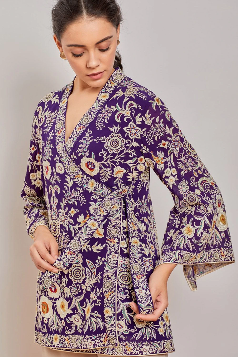 PATINE Purple Parsi Gara Embroidered Wrap Top