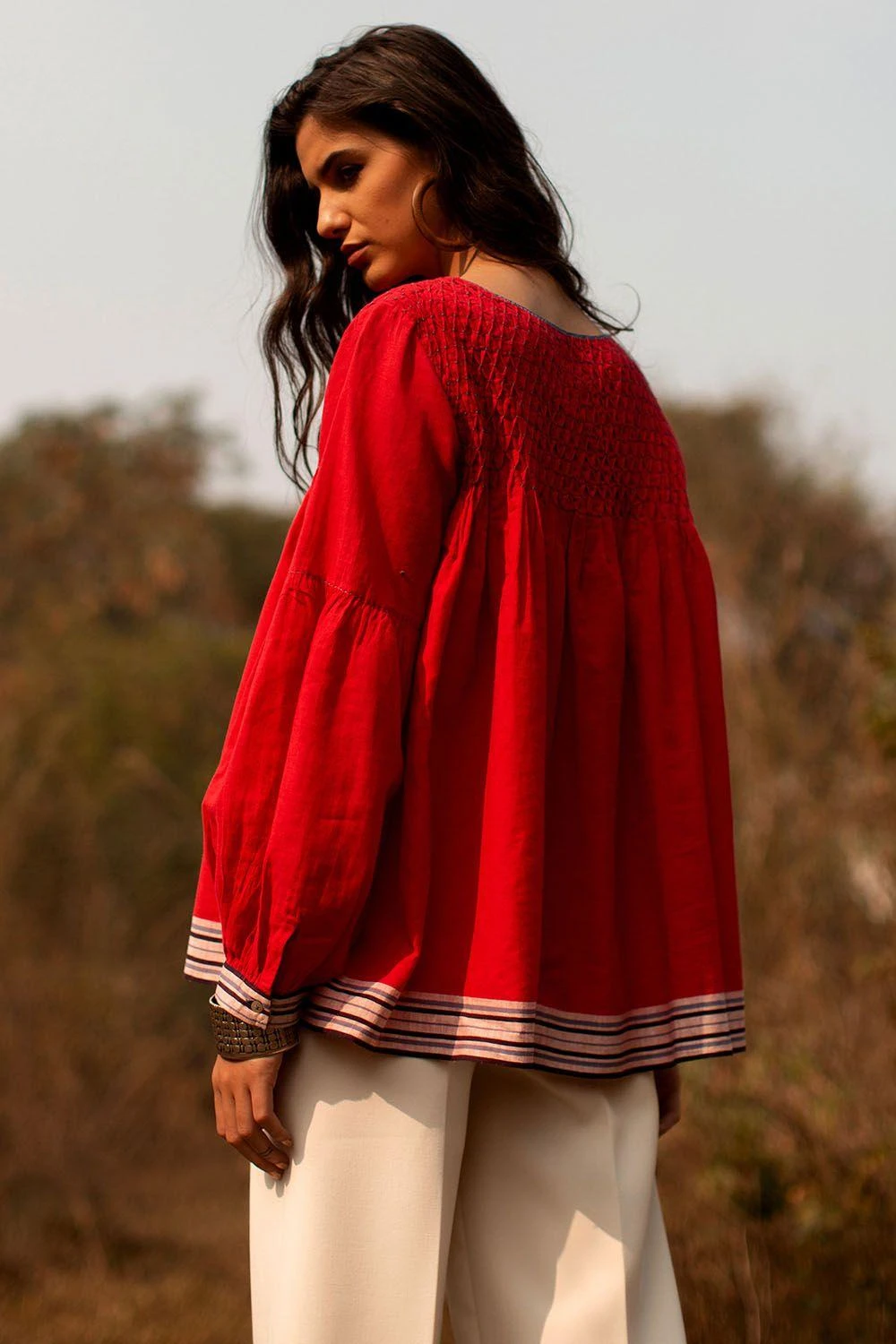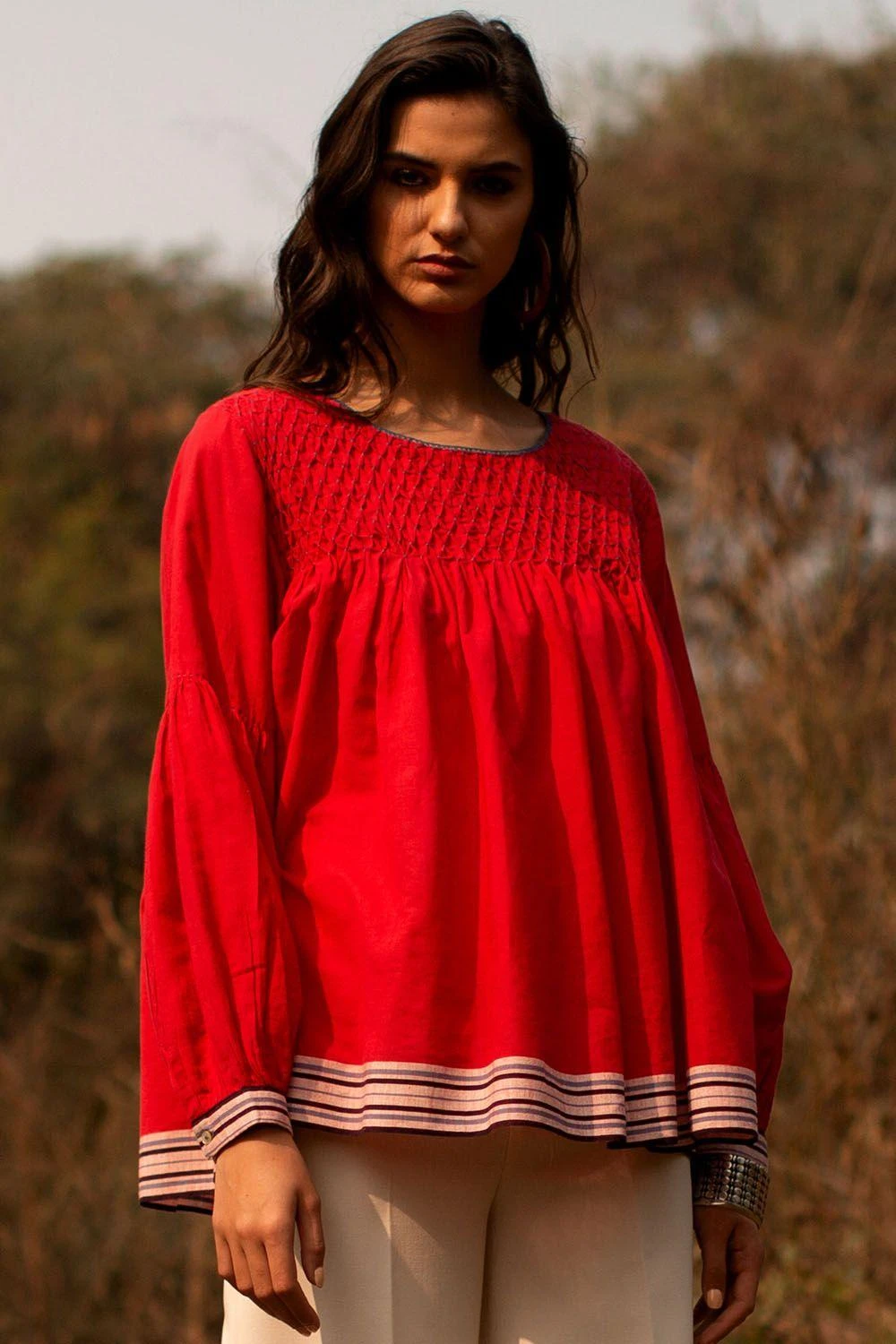 Payal Pratap Red Top With Smocking Details