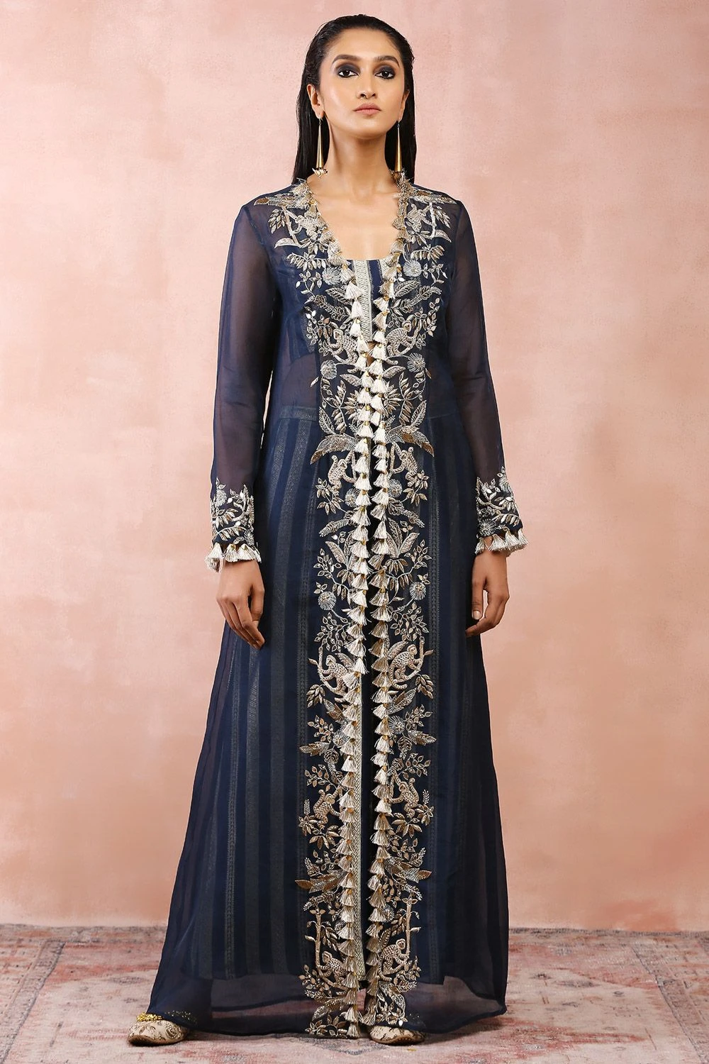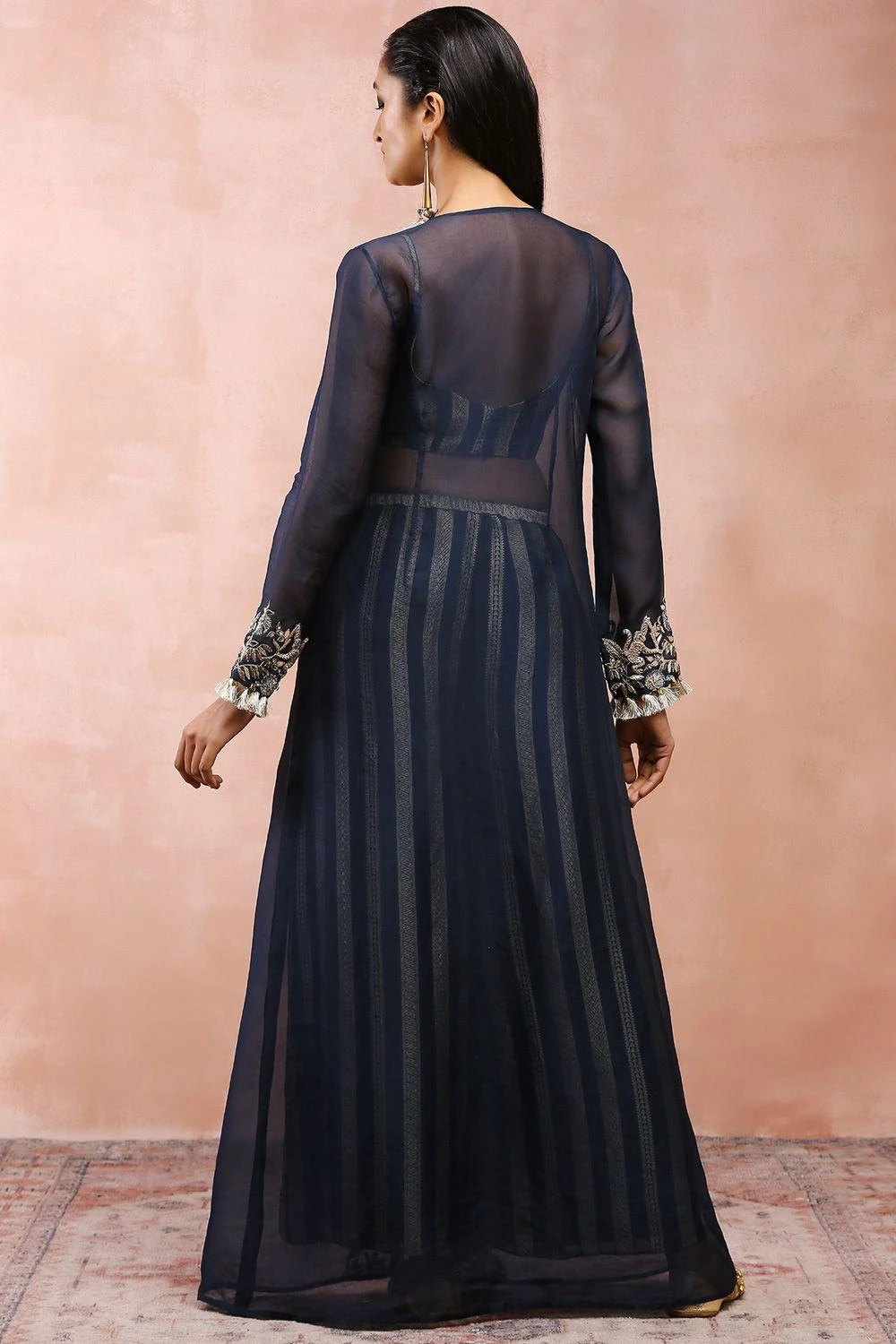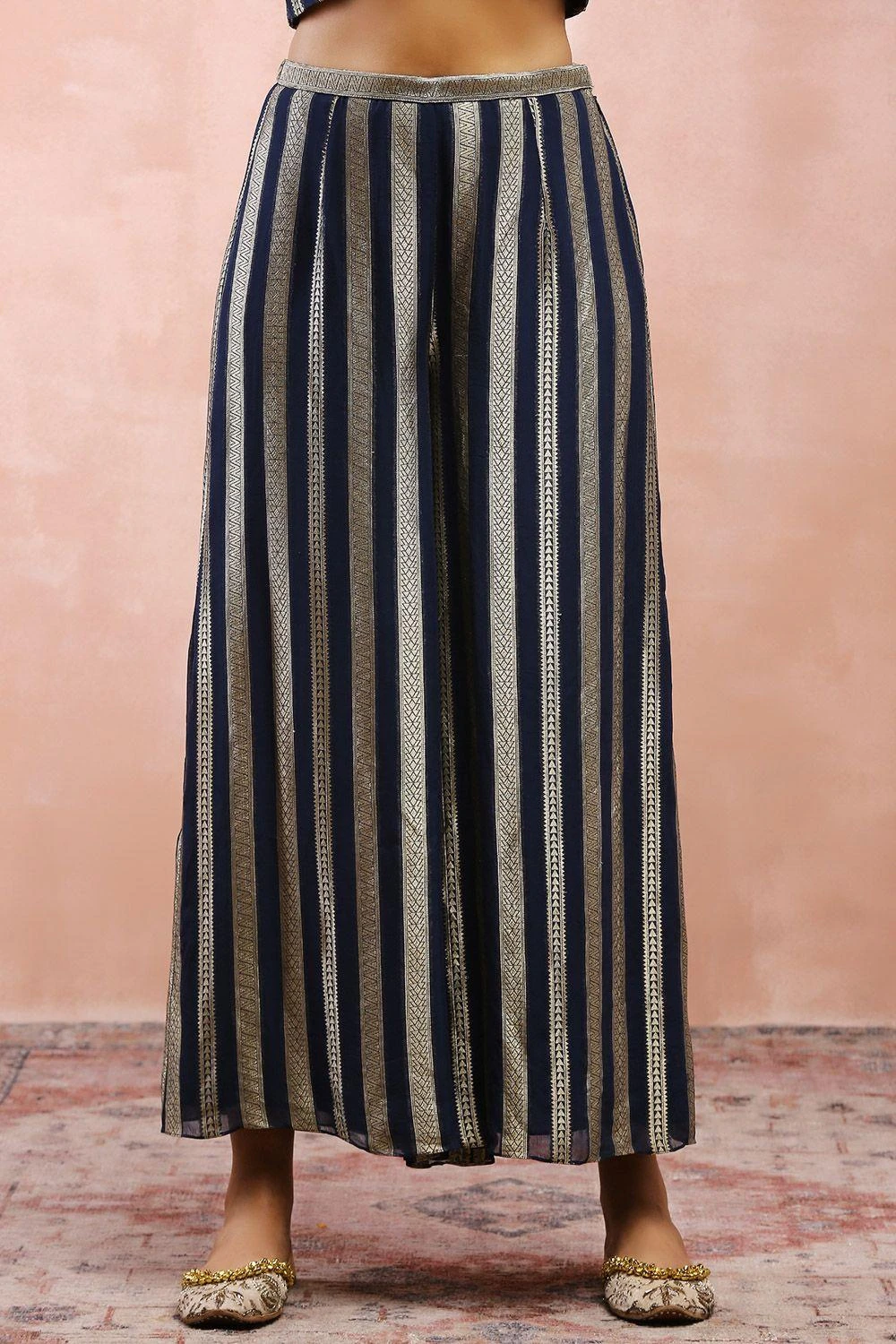 Elevate your style with this Embroidered Jacket set. The jacket, paired with bustier and flowing palazzo pants, creates a captivating symphony of fashion, perfect for those seeking to make a lasting impression with their refined sense of style.