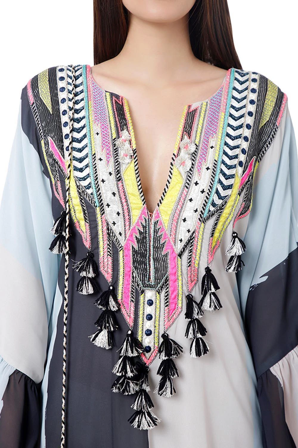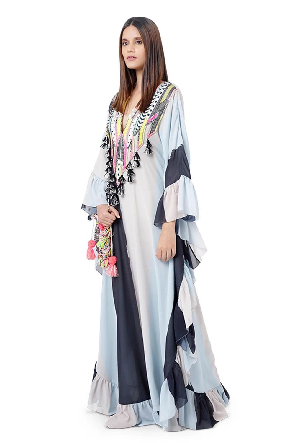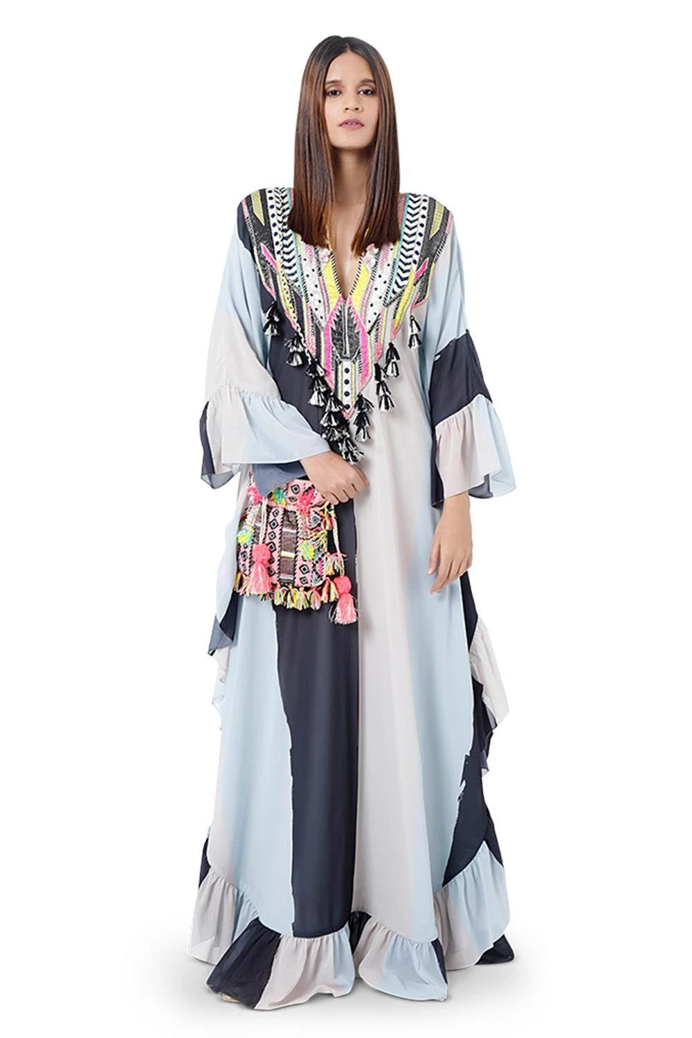 Payal Singhal Striped Frill Kaftan With Embroidery Detail