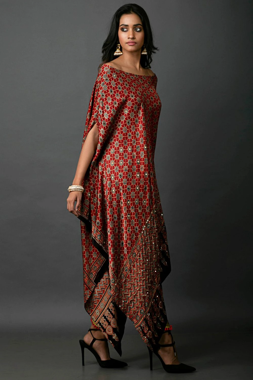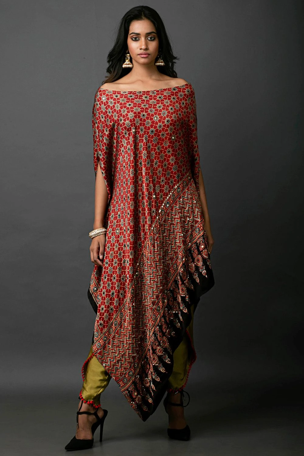 Prahnaaya Embroidered Asymmetric Satin Kaftan Set