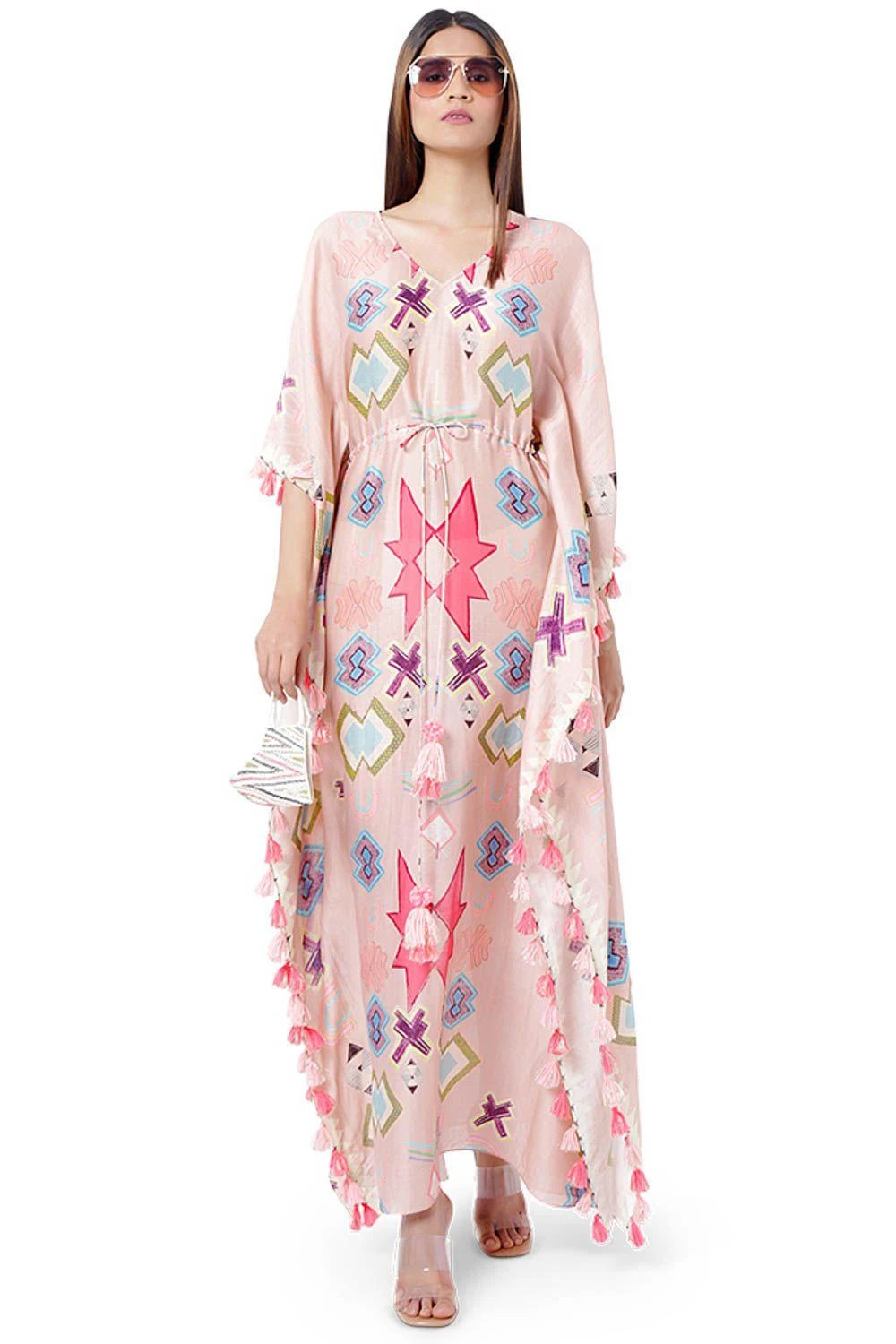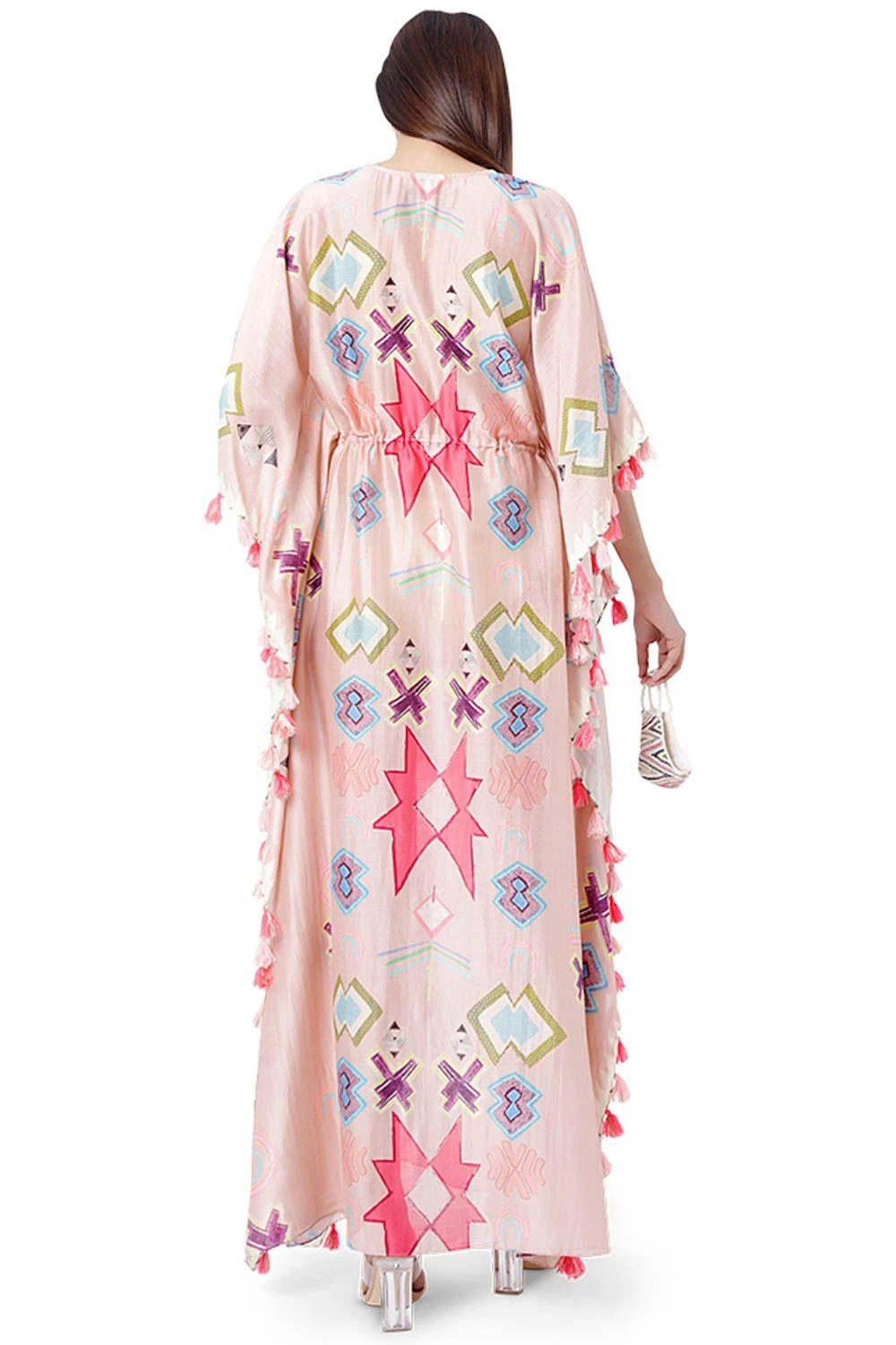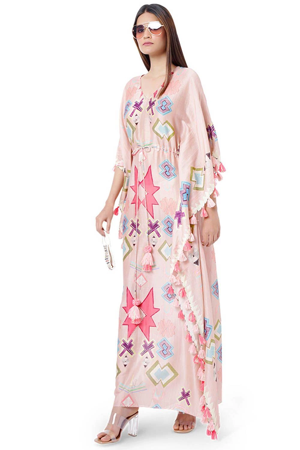 The perfect amalgamation of style & comfort, this kaftan is perfect for a day out. Crafted in silkmul, this kaftan features an ikat star print & colourful tassels all over. Style it with a pair of dangler earrings to complete the look.