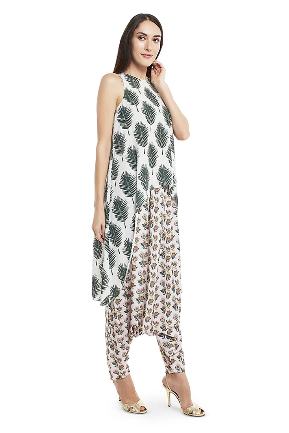 PS Pret By Payal Singhal Printed Asymmetrical Kurta With Low Crotch Pants