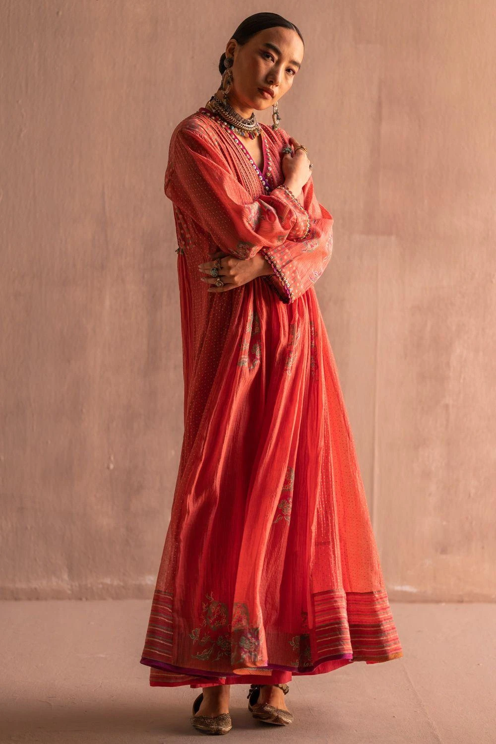 Immerse yourself in the ethereal beauty of this kurta. Adorned with fabric manipulation, hand embroidery & texturing details, it exudes a sense of artistry & craftsmanship. Experience the allure of this kurta that effortlessly combines style & grace.