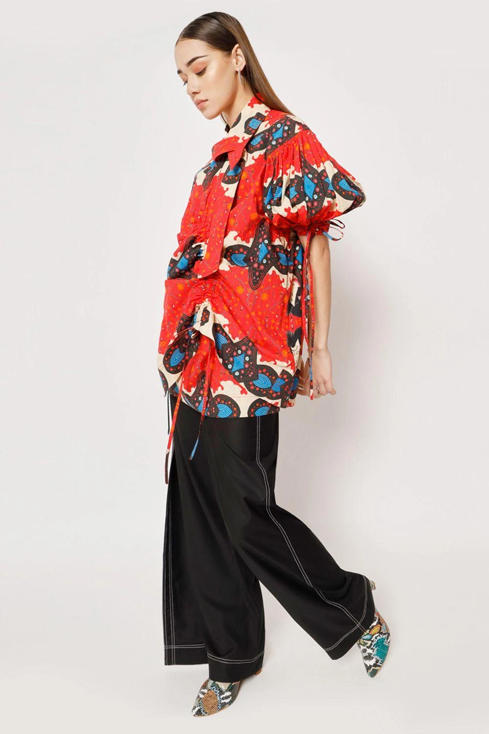 Indulge in effortless elegance with this wrap top. The asymmetrical collar adds a touch of modern flair, while the strap details offer versatility & multiple styling options. Embrace the fusion of tradition & contemporary style with this unique piece